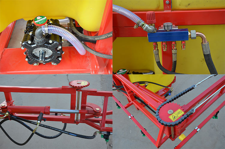 Υλικό κεφαλής ψεκασμού:Κατασκευασμένο από δομή κράματος αλουμινίου υψηλής αντοχής, εξοπλισμένη με υδραυλικό σύστημα αναδίπλωσης και ανύψωσης, είναι ευέλικτο να λειτουργεί και έχει αντίσταση στη διάβρωση.